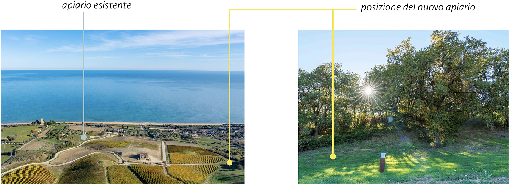 L'incontro tra Masseria della Madonna e Toyota dà vita alla proposta di inserire un secondo apiario localizzato in un’area particolarmente significativa della proprietà, sia per interesse naturalistico che per potenzialità paesaggistica. Si tratta del Bosco del Silenzio, nome che suggerisce la singolare atmosfera di raccoglimento che si respira protetti dall’abbraccio della collina e delle querce vetuste, con lo sguardo rivolto verso l’orizzonte.